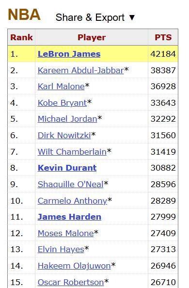 在今日的常規(guī)賽中,快船隊(duì)在客場(chǎng)對(duì)陣76人隊(duì),哈登在首節(jié)比賽中就砍下了17分2籃板2助攻1蓋帽。賽前,哈登的總得分達(dá)到了27999分,排名歷史第11位。在他身前的是2003年的探花秀卡梅隆-安東尼,后者以28289分排名歷史第十。