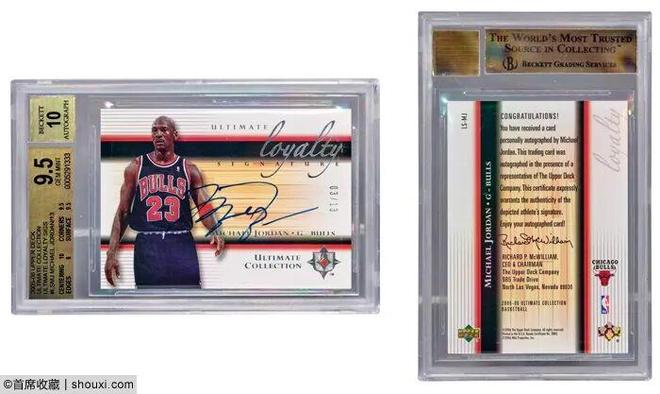 2021-22阿爾佩倫-申京新秀球衣PATCH實(shí)物簽字球星卡09/10,估價(jià)1.5萬(wàn)-10萬(wàn)元;2018-19凱里-歐文球衣LOGOMAN實(shí)物球星卡1/1,估價(jià)2萬(wàn)-15萬(wàn)元;2004-05邁克爾-喬丹親筆簽字球星卡,BGS10/10,估價(jià)4萬(wàn)-25萬(wàn)元;2012-13科比-布萊恩特親筆銘文簽字球星卡一組2張,BGS9.5/10,估價(jià)20萬(wàn)-150萬(wàn)元。