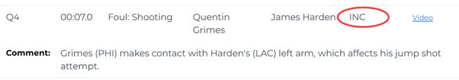 第三次漏判,也是最重要的漏判。距離比賽結束還有7秒時,快船落后兩分,哈登三分出手被格雷姆斯打到手肘,但當時裁判沒有吹犯規,賽后還說是正常干擾。但官方裁判報告指出,格雷姆斯確實打到哈登手臂,影響了他的跳投,該判防守犯規,這本該是一次三分罰球的機會。快船吃虧,76人獲利。