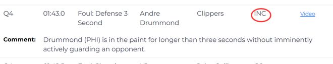 第一次漏判,發生在距離比賽結束還有1分43秒,76人的德拉蒙德在沒有積極防守對方球員的情況下在己方禁區內停留時間超過3秒,這是一次漏吹的防守三秒違例,快船吃虧,76人獲利。