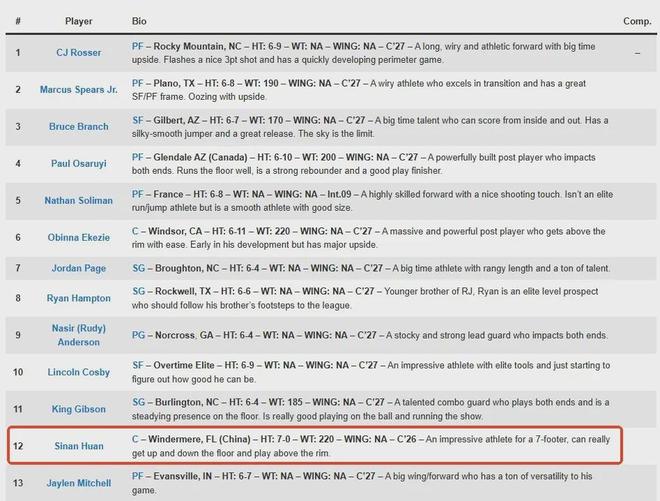 此前美媒NBA Draft Room發(fā)布了2028年選秀預(yù)測榜單,顯示郇斯楠會(huì)在首輪第12順位被選中......