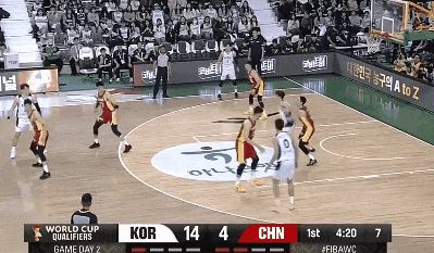 首節比賽雙方前三分鐘打成4-4平手,但隨后中國隊進攻斷電,反觀韓國隊中距離屢屢命中打出一波12-0瞬間拉開分差。