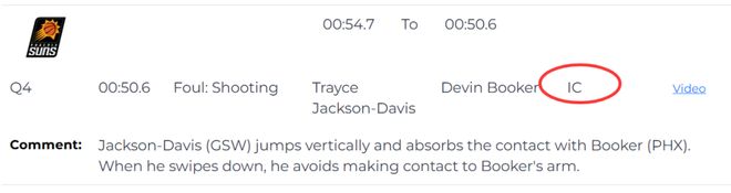 第一次是錯判,發生在距離比賽結束還有50.6秒。裁判報告指出,勇士隊的杰克遜-戴維斯高高躍起,扛住了與太陽隊布克的身體對抗。他試圖封蓋時,刻意避開了布克的手臂,沒有發生接觸。當時裁判判罰勇士防守犯規,布克2+1是錯判,這是沒有問題的防守。勇士吃虧,太陽獲利。