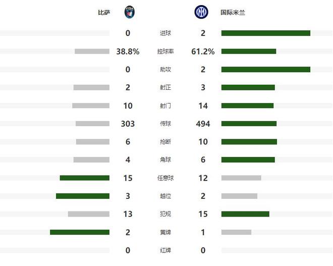 賽前不被看好的比薩,上半場第12分鐘率先制造出了有威脅的進(jìn)攻機(jī)會,恩佐拉在左路面對阿坎吉和巴雷拉兩人的圍剿,仍然利用靈活的腳下動作擺脫,隨后完成了一腳小角度攻門,不過被索默撲出,第27分鐘國際米蘭還以顏色,勞塔羅馬丁內(nèi)斯禁區(qū)內(nèi)甩頭攻門稍稍偏出立柱。
