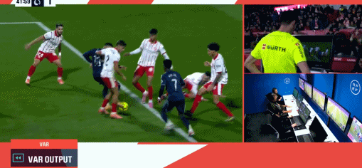 第22分鐘,皇馬還是左路發(fā)起進攻,維尼修斯禁區(qū)前沿強行突破殺入禁區(qū)左腳大力抽射,皮球稍稍高出橫梁。第26分鐘,赫羅納右路范進,齊甘科夫禁區(qū)前沿左腳大力兜射,門將庫爾圖瓦撲救脫手,不過他倒是搶在瓦納特補射之前將球撲住。第40分鐘,皇馬前場圍攻造成門前一片混亂,混戰(zhàn)中姆巴佩轉(zhuǎn)身將球捅入網(wǎng)窩,主裁在VAR確認(rèn)后,認(rèn)定姆巴佩手球在先,進球被吹掉。上半時最后1分鐘,赫羅納右路快速反擊,林孔快速推進45度角橫傳中路,齊甘科夫前點策應(yīng)巧妙將球往中路做,無人防守的奧納希點球點前迎球右腳大力兜射,皮球應(yīng)聲入網(wǎng),赫羅納半場結(jié)束前1:0打破僵局。