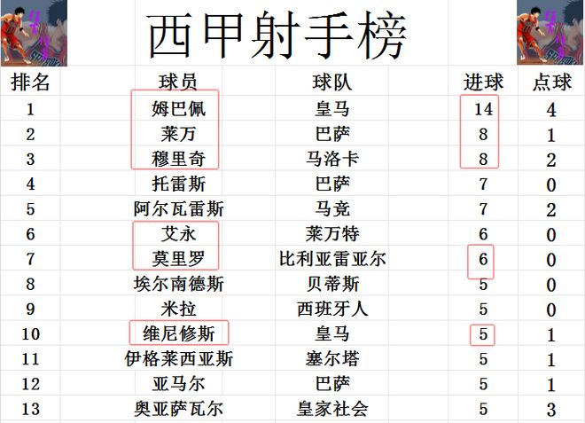 射手榜方面,姆巴佩今天點射建功后,再拉大領(lǐng)先優(yōu)勢,比第2的萊萬,穆里奇多了6球。托雷斯,阿爾瓦雷斯7球并列第4。莫里羅今天梅開二度,追上艾永,兩人6球并列第6。維尼修斯無力破門,還是和亞馬爾,奧亞薩瓦爾等人5球剛好擠入前十。
