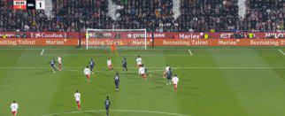 40’姆巴佩在門前混戰中捅射破門,但因手球在先進球無效。