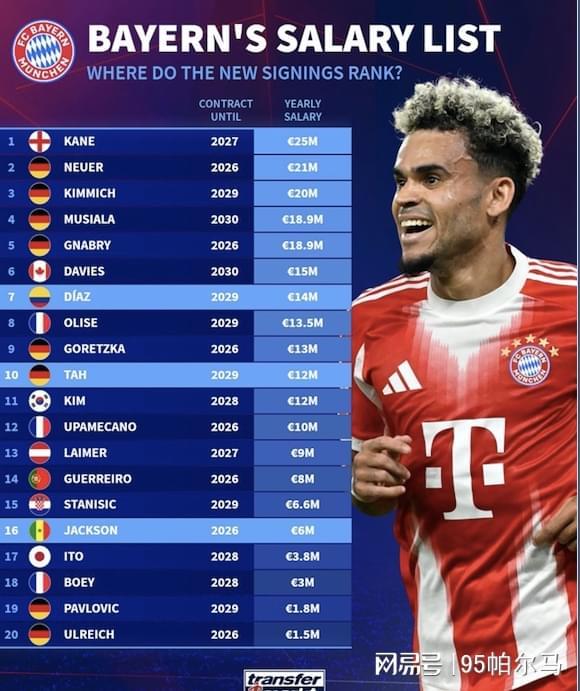 毋庸置疑,迪亞斯1400萬歐元的年薪相對于利物浦時期實現了大飛躍,但就拜仁隊內而言,個人待遇僅僅位列第7位。結合每84分鐘造1球的效率和場均評分超過8分的表現,這筆交易極具性價比。